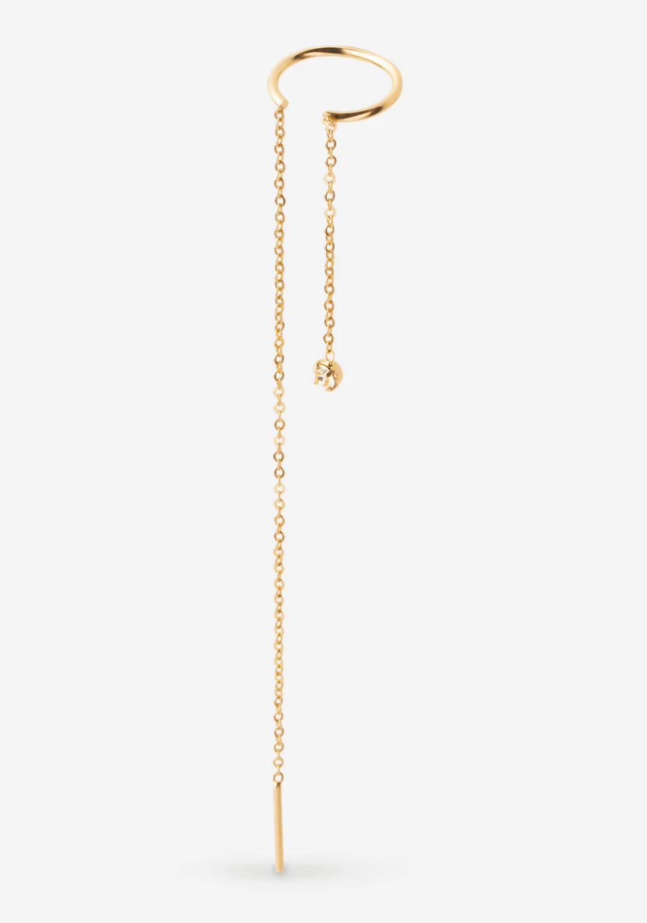 Avec sa fine chaîne dorée et son cristal lumineux, l'earcuff chaines Maël mise sur une élégance discrète et contemporaine. Léger, délicat et ultra chic, il se porte seul pour un look épuré ou combiné avec d’autres bijoux d’oreilles, pour un effet plus audacieux. La chaîne peut être laissée libre ou passée dans un ou deux trous du lobe pour un effet drapé canon. La bague d’oreille est ajustable pour assurer son maintien.