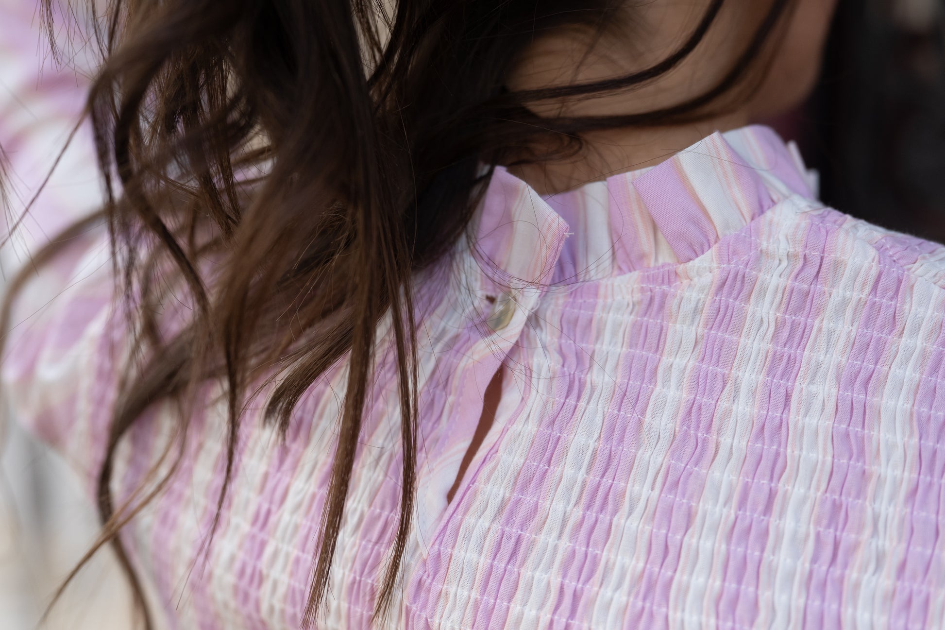 Blouse rayée beige, rose et fines rayures orange