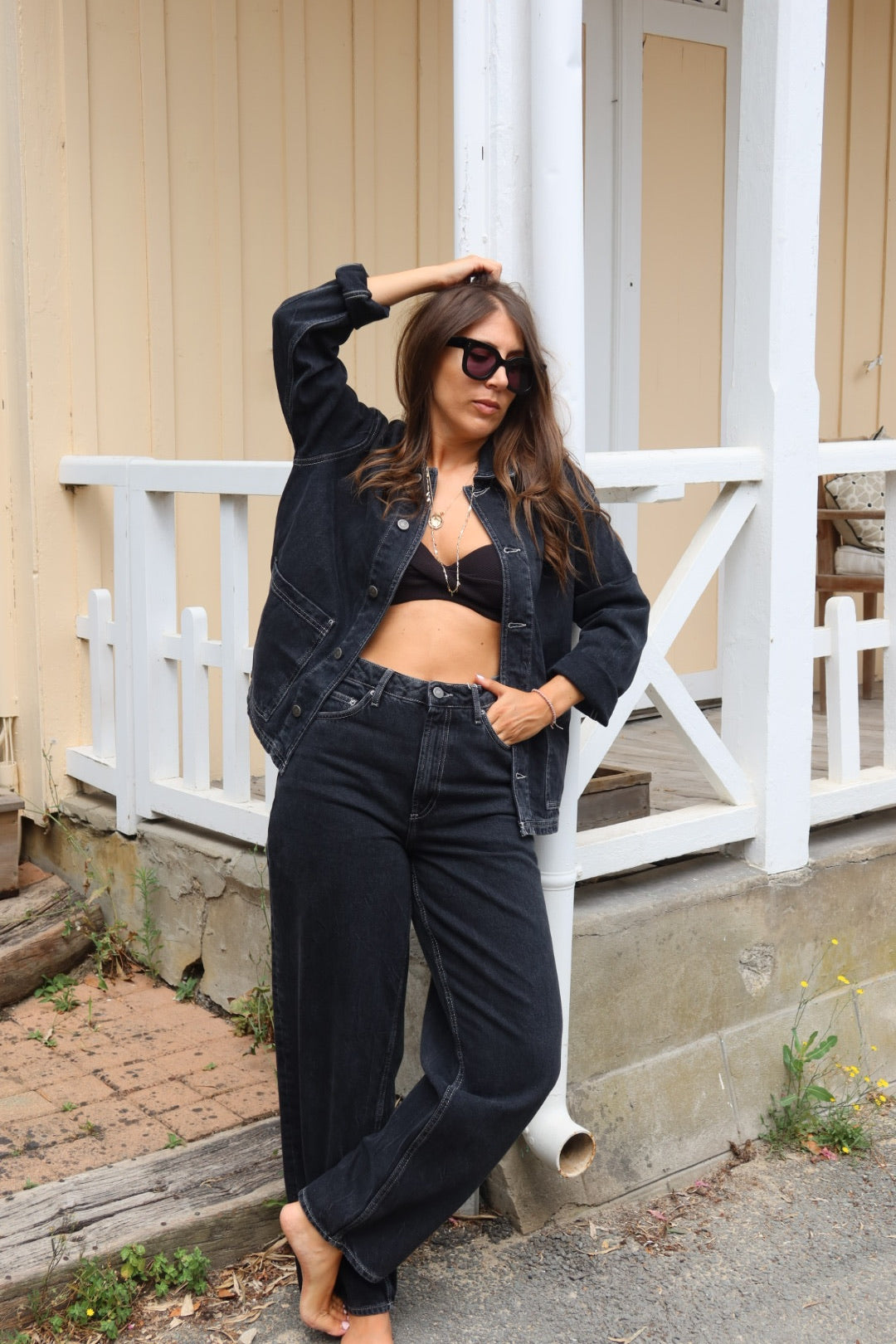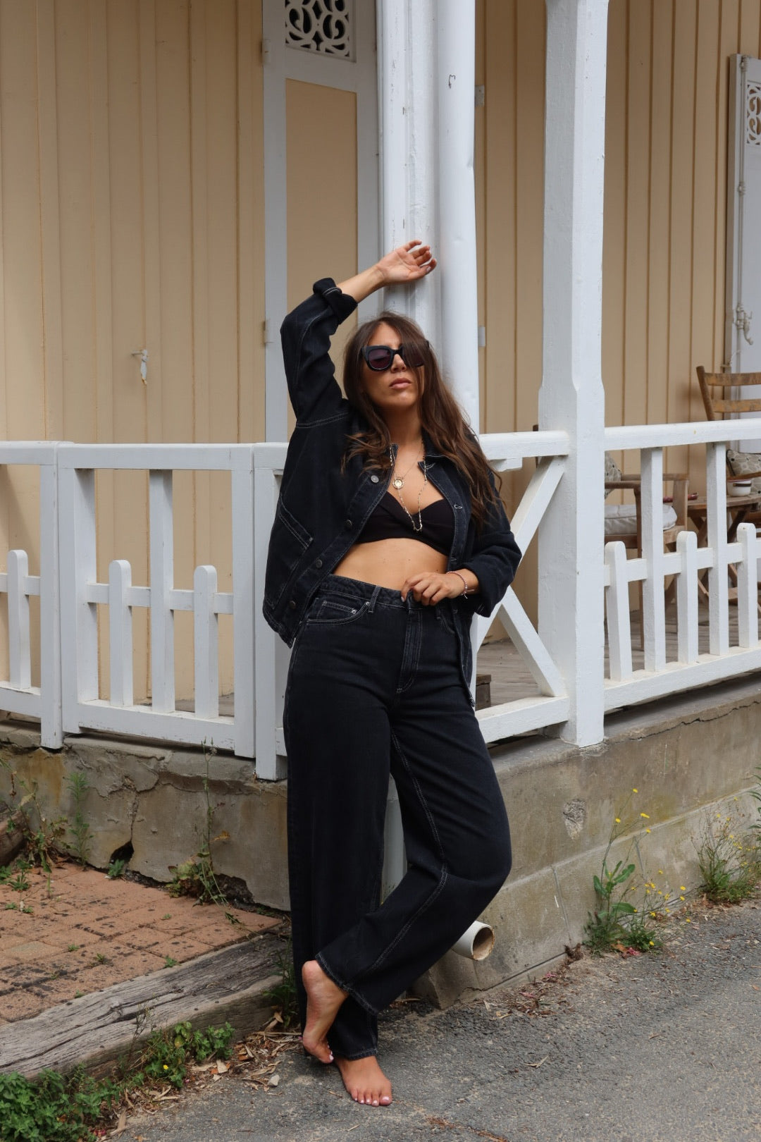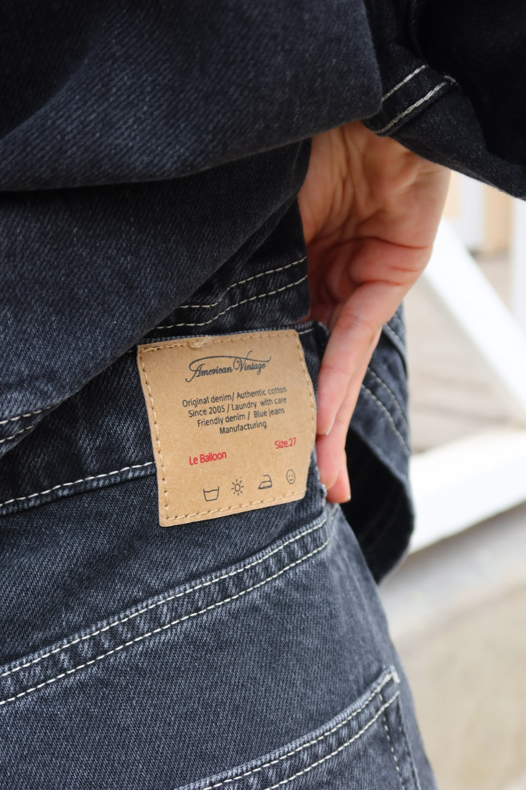 Jean ballon américain bleu marine, assorti à la veste Denim Vintage.