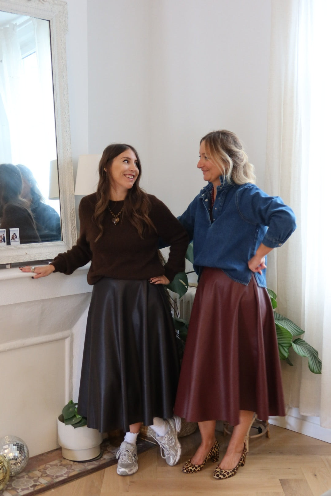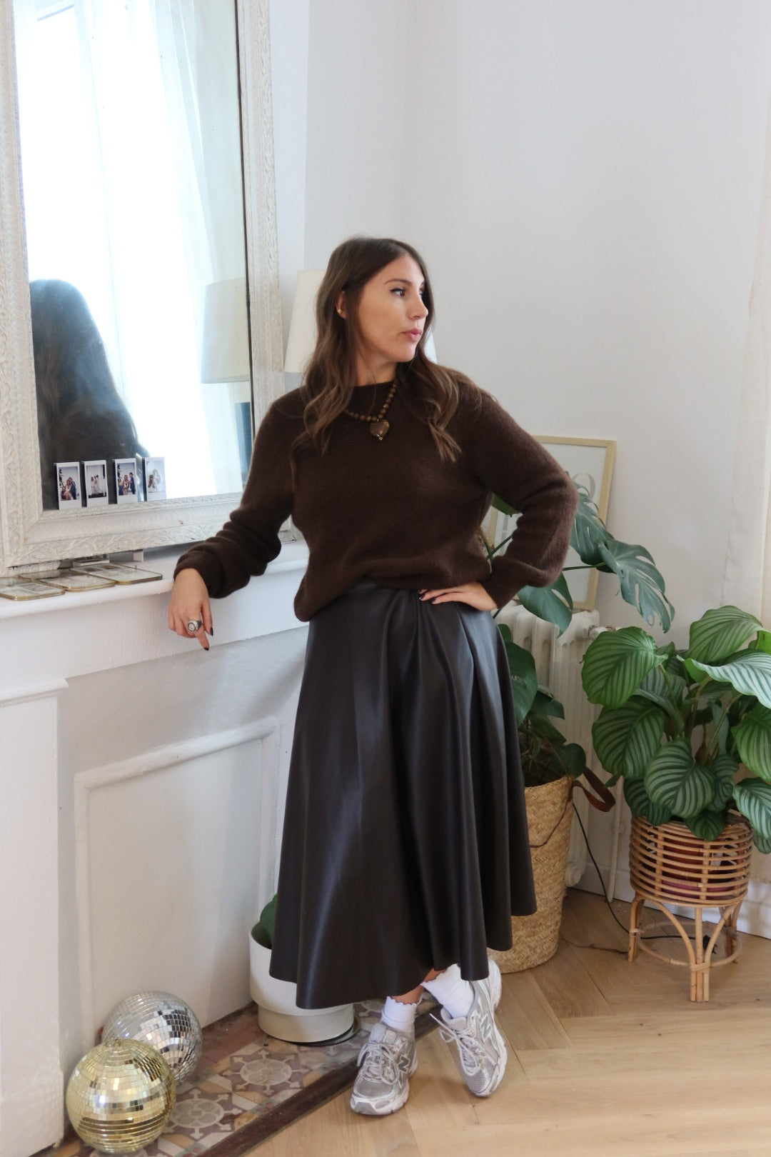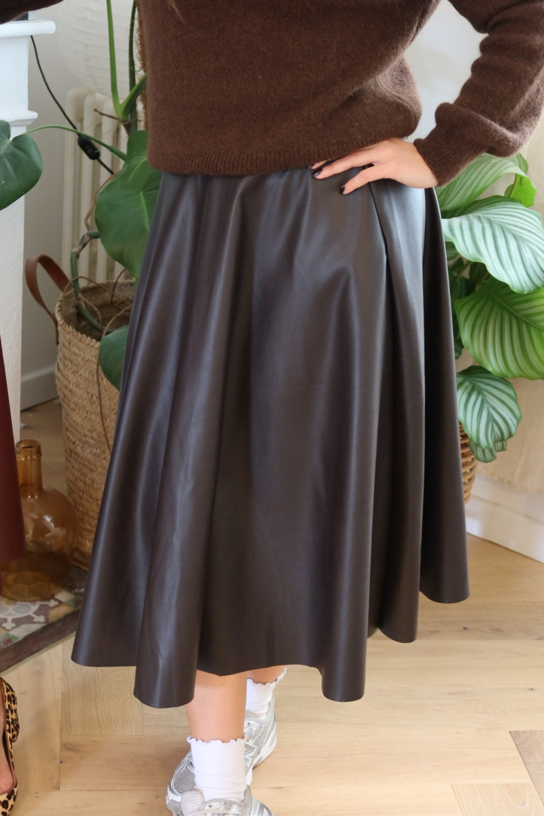 Jupe simili cuir marron
